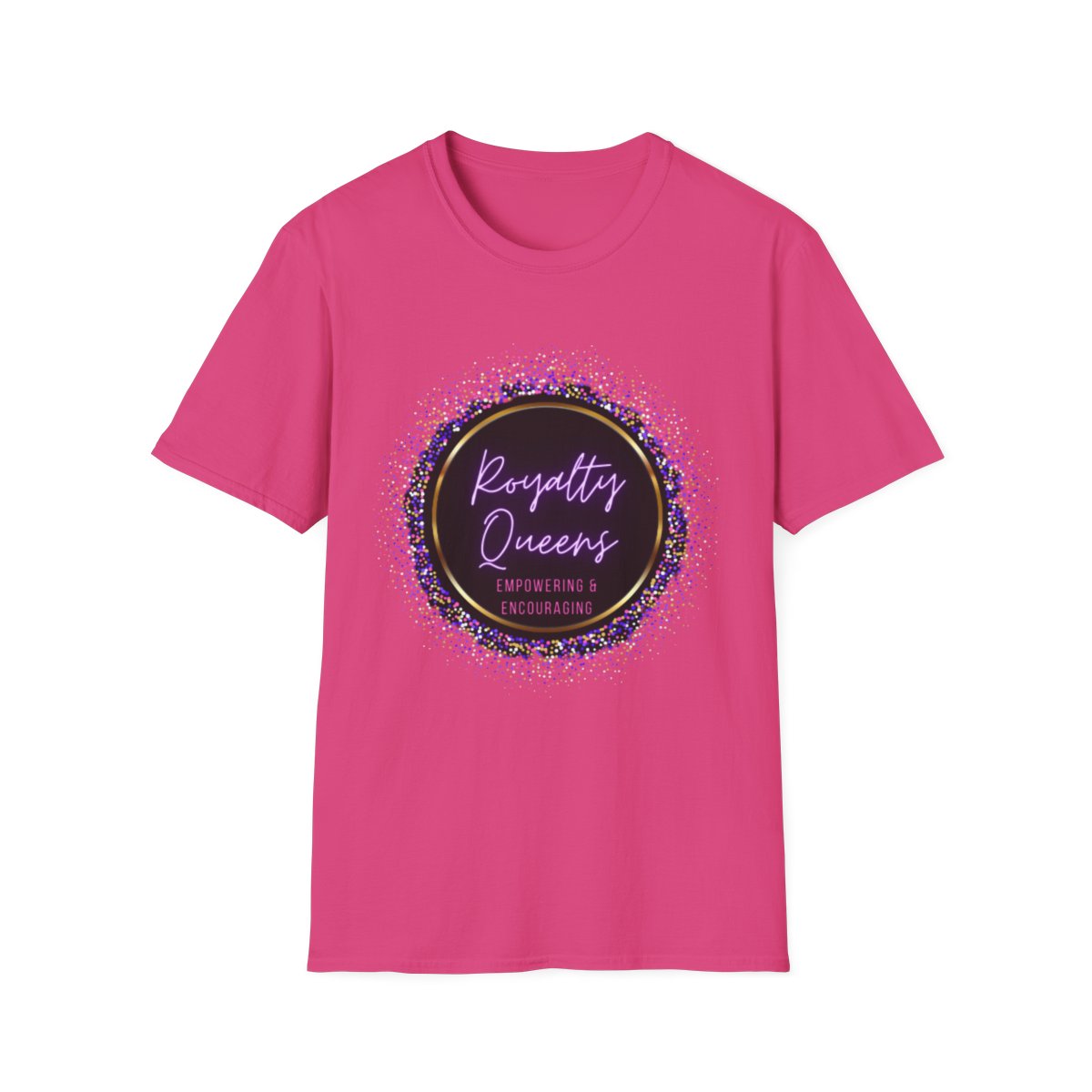 pink shirt with royalty queen on it in the middle of the shirt with sparkles around it.